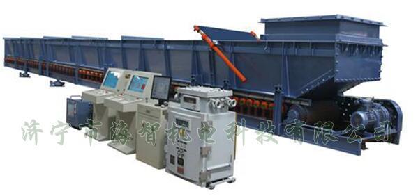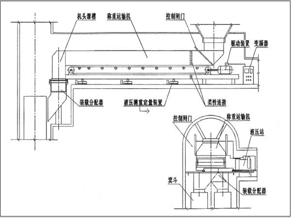 液壓稱重水平裝載給料機(jī)的裝在系統(tǒng)比較成熟,將稱重傳感器放置在水平運(yùn)輸機(jī)的下面,從而省掉了傳統(tǒng)裝載系統(tǒng)中的定量斗裝置,大大減小了裝載硐室的高度。液壓稱重水平裝載給料機(jī)的設(shè)計(jì)采用甲帶結(jié)構(gòu),前后都增加了清掃器,可對(duì)粘煤進(jìn)行清理,同時(shí),底部還增加了回煤收集器。